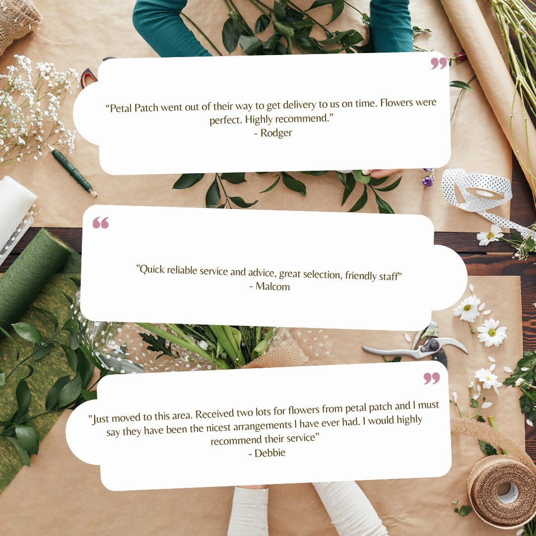 Petal Patch will help you find a way to send the right message to someone special. Whether you are looking to pay respects to those you love, show your appreciation for services, or put on a big display of your affections to the one you love. Petal Patch can help you say it right with flowers. Our Florists are fully versed in the philosophy of colour symbolism and the meaning behind flowers. Ask our friendly team for advice when you call or visit. We provide same-day delivery services Locally. Order your lovely flowers and have them delivered to that special someone the same day.