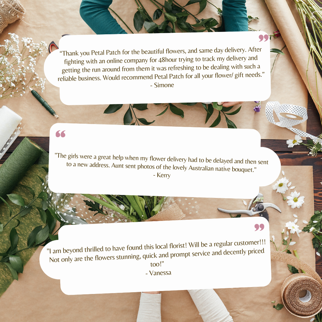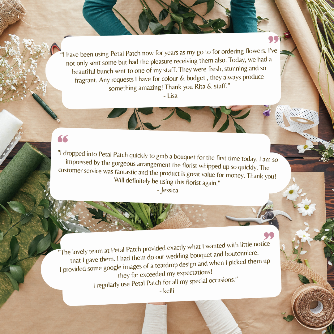 Petal Patch will help you find a way to send the right message to someone special. Whether you are looking to pay respects to those you love, show your appreciation for services, or put on a big display of your affections to the one you love. Petal Patch can help you say it right with flowers. Our Florists are fully versed in the philosophy of colour symbolism and the meaning behind flowers. Ask our friendly team for advice when you call or visit. We provide same-day delivery services Locally. Order your lovely flowers and have them delivered to that special someone the same day.